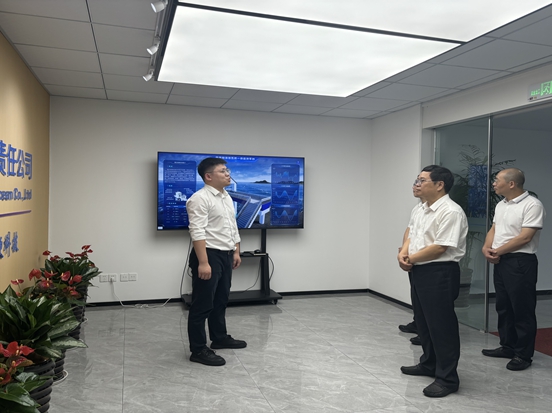 随后,林明森副理事长走访已入驻的部分涉海企业,在福州海科新质技术有限责任公司,林明森详细了解了公司的建设情况、正在开展的各项业务以及目前取得的主要成果,并围绕数智科技研发解决海洋灾害、海上交通、海洋生态等海洋安全问题与企业负责人进行了深入交流并提出宝贵的发展建议。