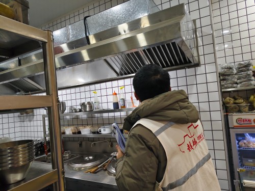 本次行动聚焦餐饮后厨防火重点,对消防设施配备、安全巡查记录、抽油烟机及油烟管道清洗情况等进行现场核验,并详细询问企业安全生产责任制落实情况和春节期间经营安排。重点核查抽油烟机油垢堆积及清洗台账记录情况,对发现的油污附着过厚、清洗周期不规范等问题,当场下达整改通知书,责令限期整改到位。