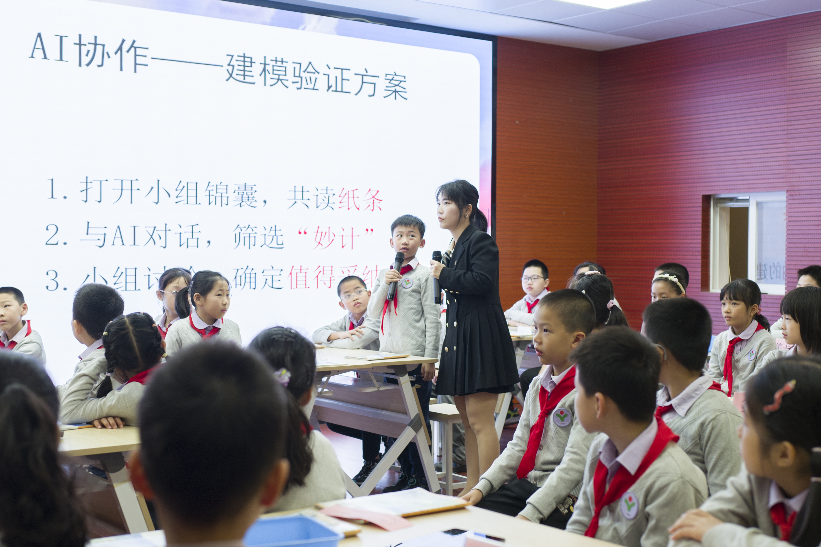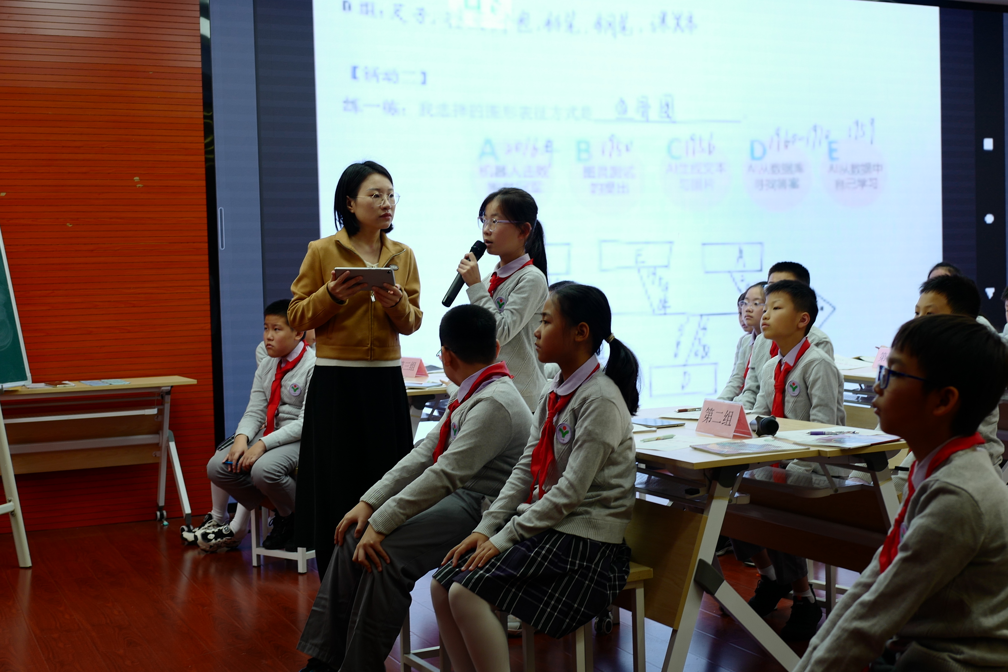 梅峰小学王吟老师则依托 AI 技术重构了真实的口语交际时空。她让沉浸式场景成为语言输出的“脚手架”,引导学生在大胆分享与合作交流中,实现了语言能力与思维品质的同步拔节,为情境化教学提供了数字化破局的新样本。