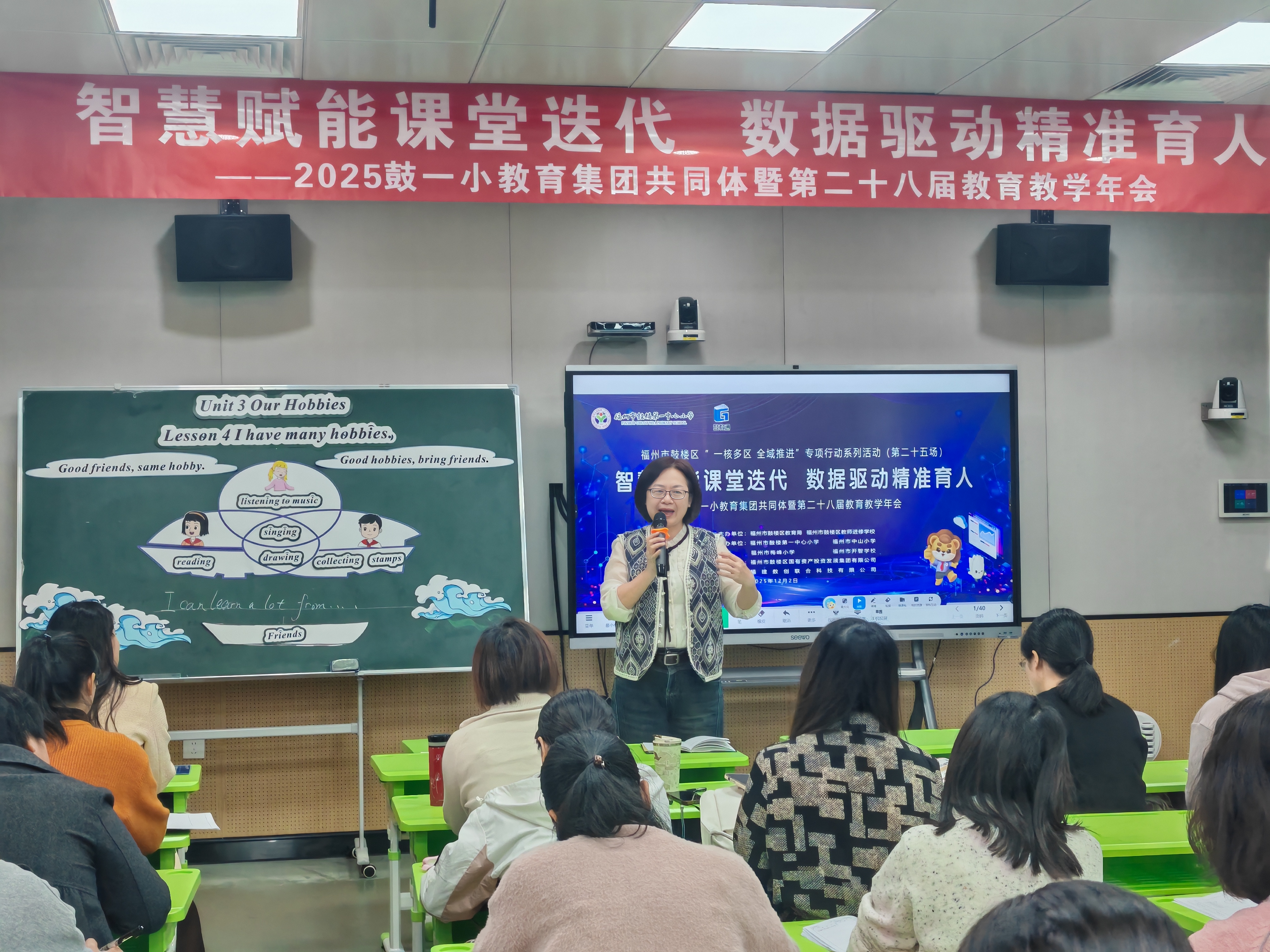 12月2日,鼓一小教育集团共同体第二十八届教育教学年会盛大启幕。本次年会设立语文、数学、英语、音乐、体育、科学六大分会场,六科联动,同频共振。大会紧扣“智慧赋能课堂迭代,数据驱动精准育人”核心主题,全景式呈现了课堂教学与 AI 技术深度融合的创新图景。