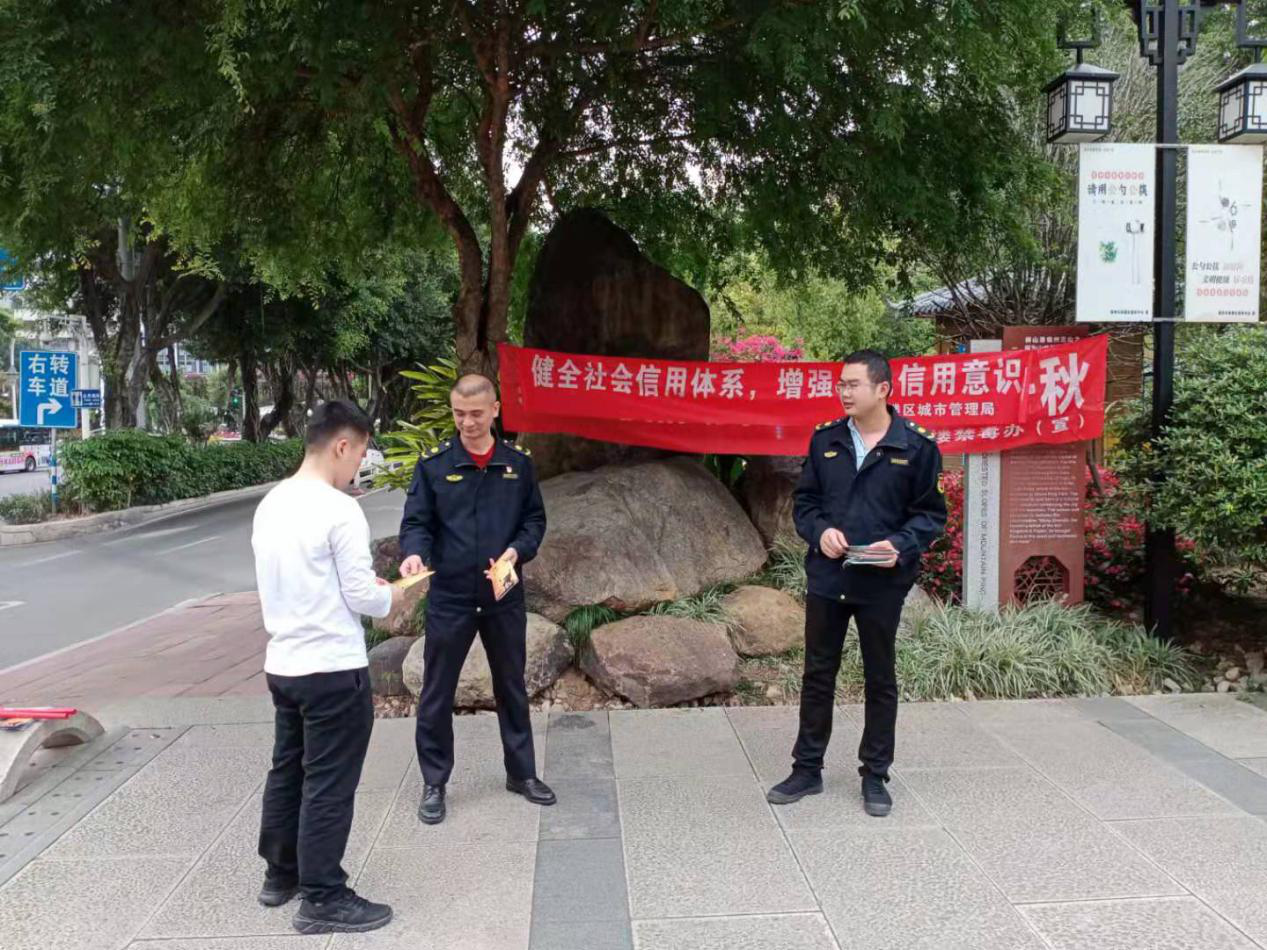 2021年4月7日下午,我局华大中队在华屏路开展践行诚信规范宣传活动,向群众发放宣传材料,宣讲诚信相关知识,提高市民诚信规范意识,塑造诚信品格,营造良好的践行诚信规范氛围,共发放相关宣传单30余份。