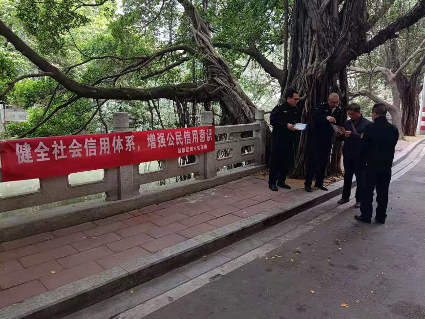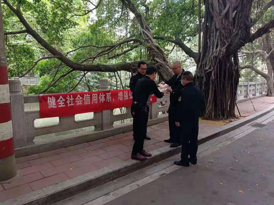 为加快推进社会信用体系建设工作,进一步提高居民信用意识,营造诚实守信的良好环境。4月13日下午,永利皇宫 城市管理局水部执法中队组织本单位工作人员在住宅集中区琼东河畔开展信用宣传活动。