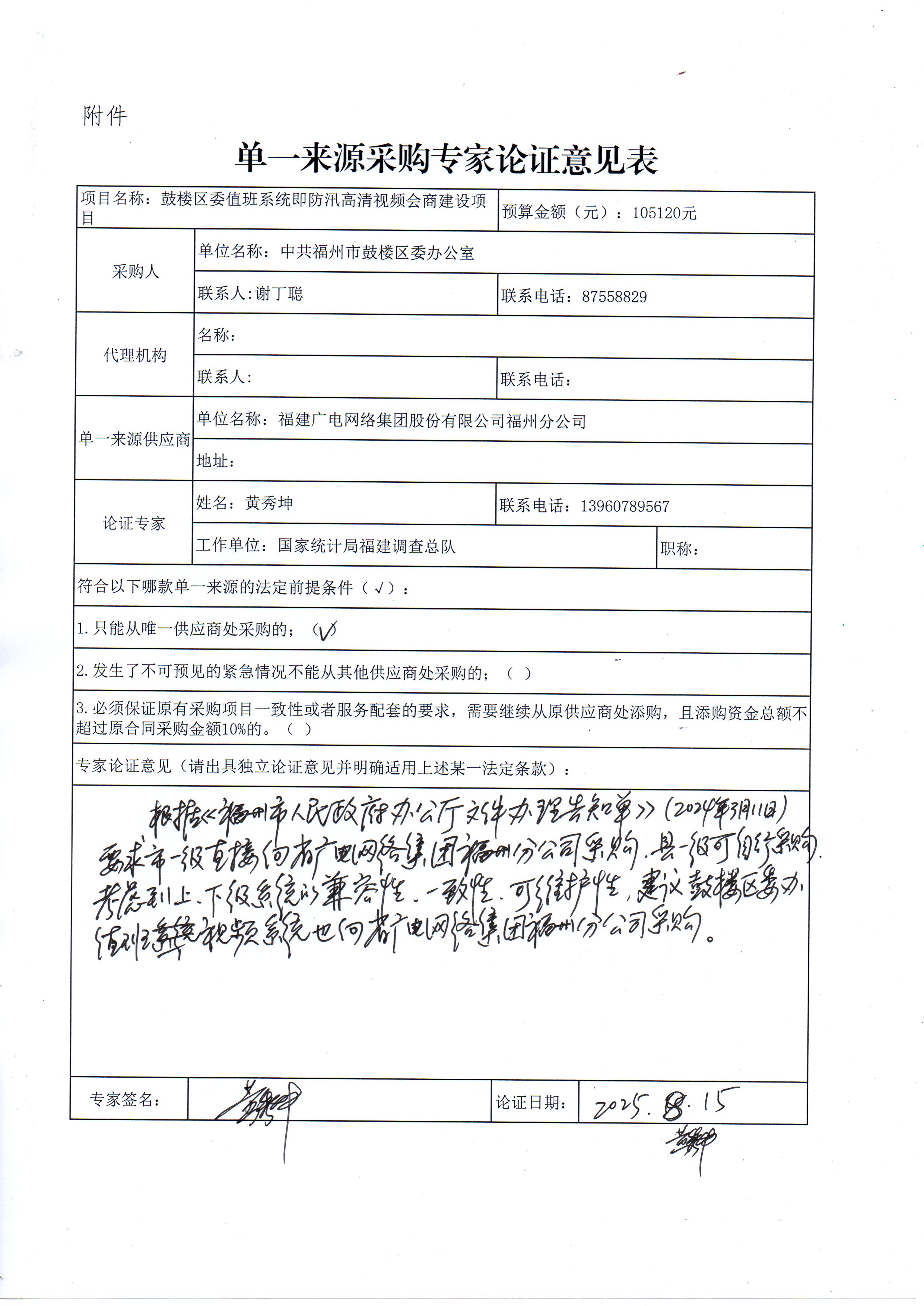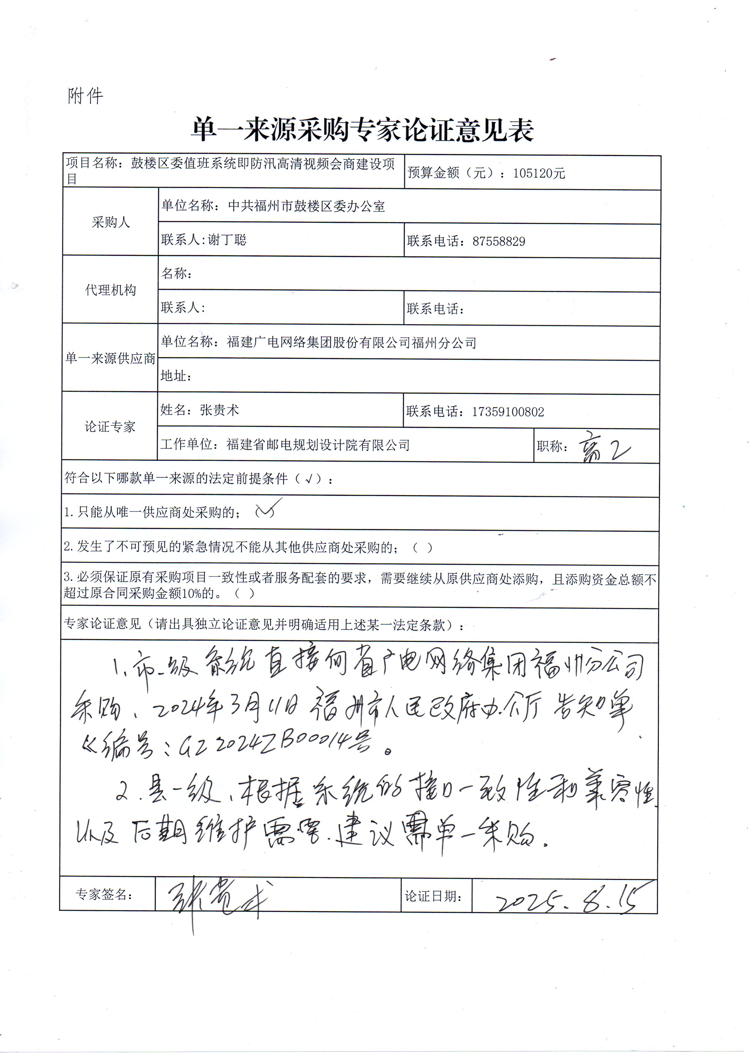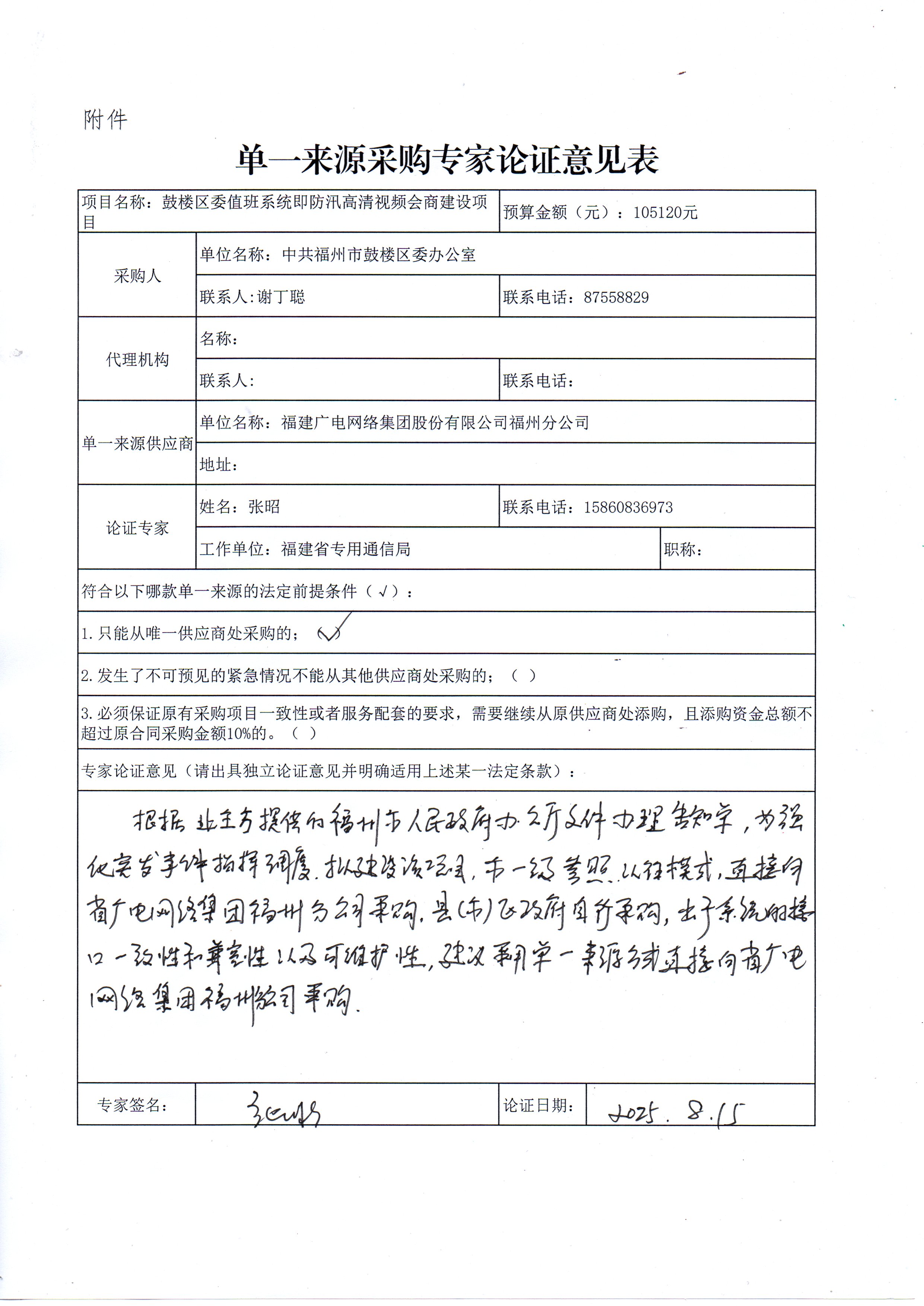 单一来源采购专家论证意见表三份